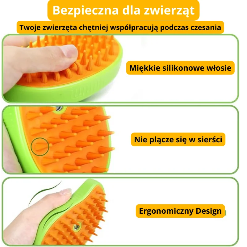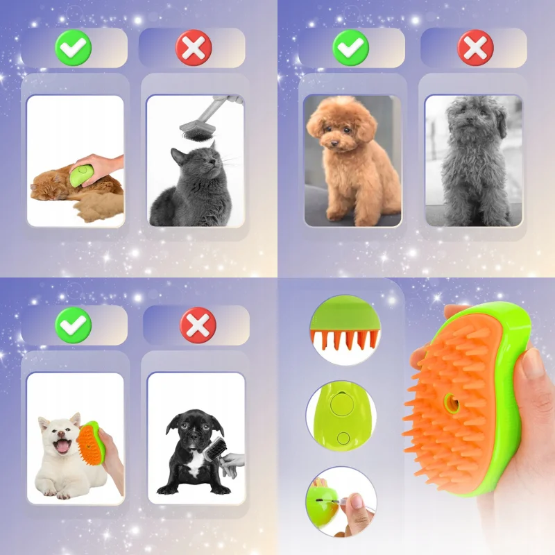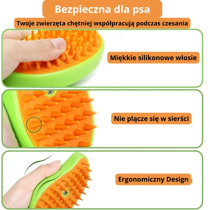 Delikatnie nawilża sierść, ułatwiając rozczesywanie i usuwanie martwych włosów. Ciepła para minimalizuje ciągnięcie i podrażnienia, dbając o komfort Twojego pupila.